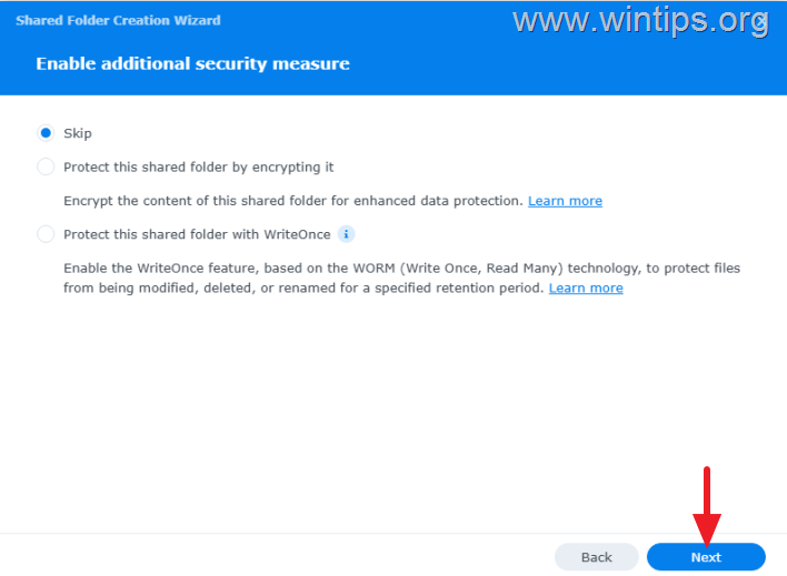 3. In the next screen enable any additional security measure your want and then click Next again.