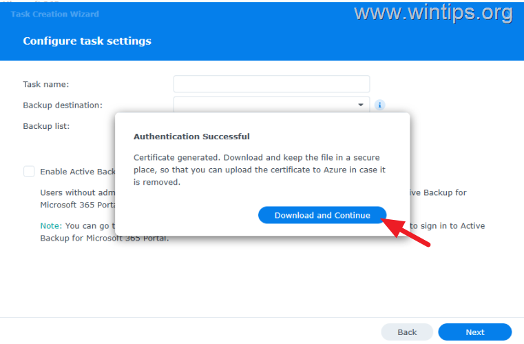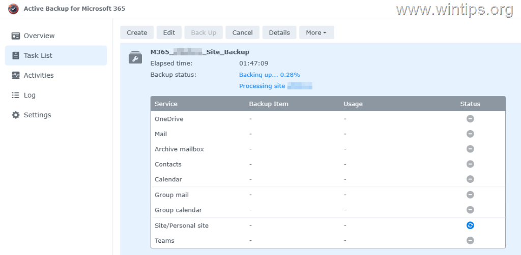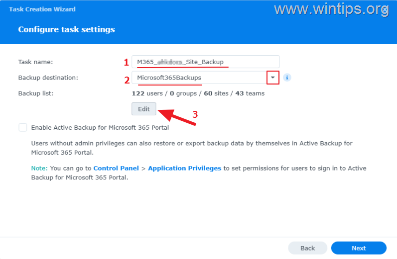 Now lets create a new backup task, to backup the M365 data to your Synology NAS.